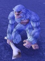Yetis are brutal humanoid creatures that live around mountains. Their fur color might vary according to temperature and surroundings to give better cover. All yetis carry a bone of unknown origins that they use as a club. The strongest yetis have menacing horns.